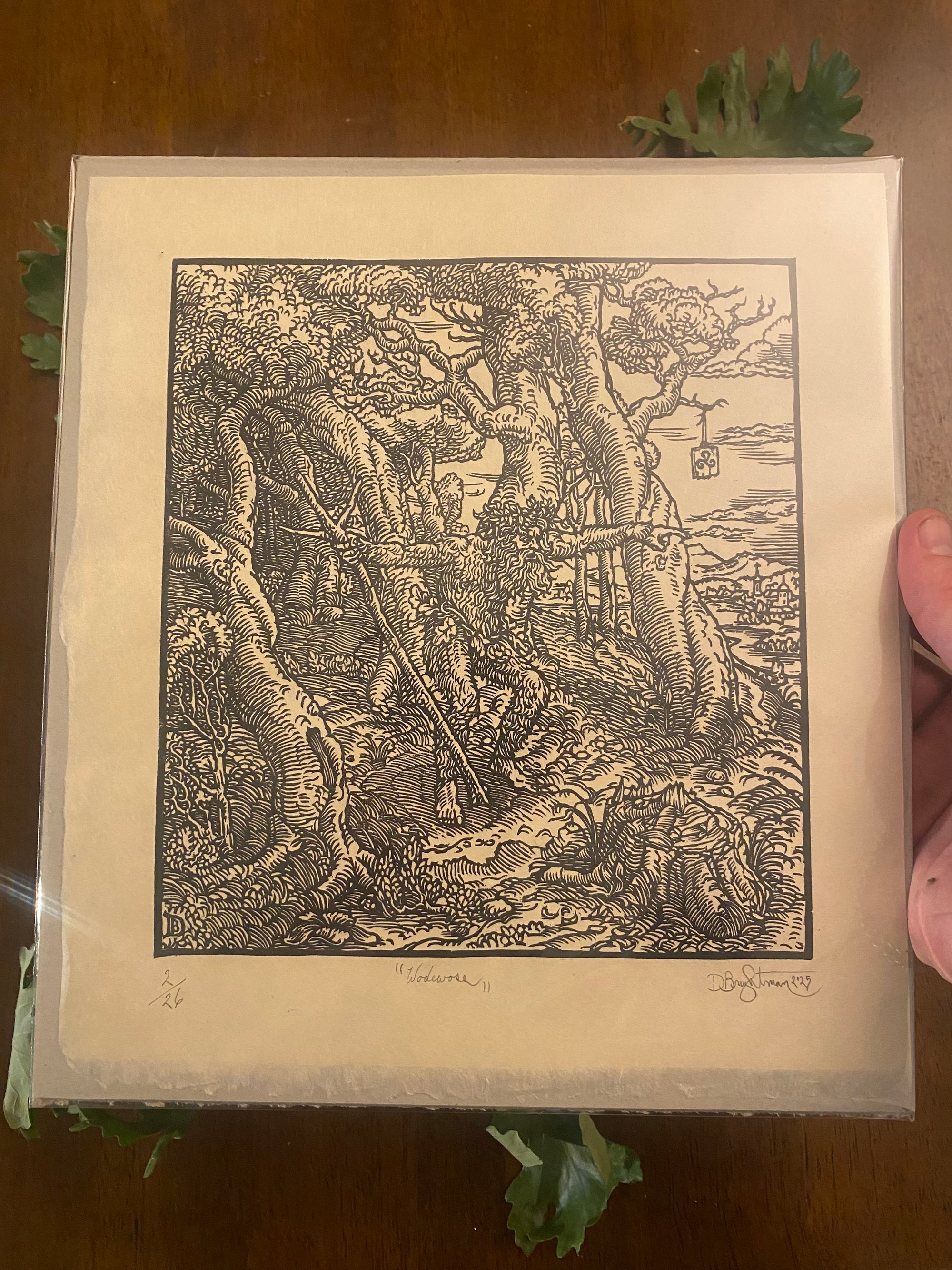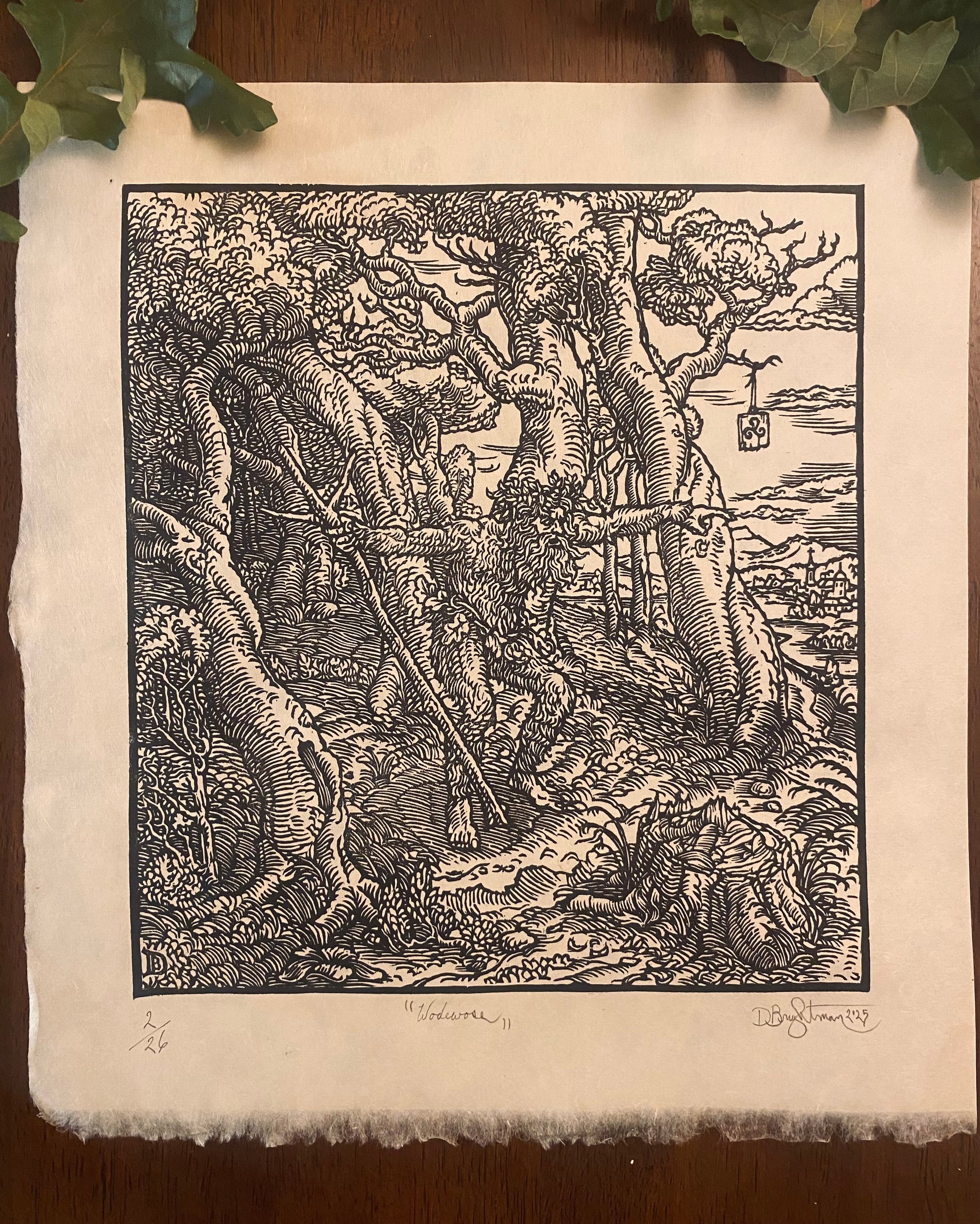 Handmade woodcut print of original artwork on fine kitakata printmaking paper, done with oil-based etching ink.